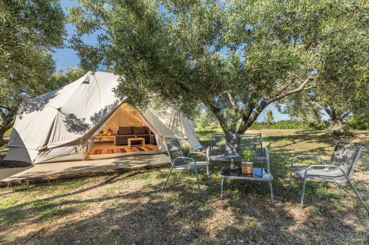 Luxe Glamping-tent in een olijfgaard
