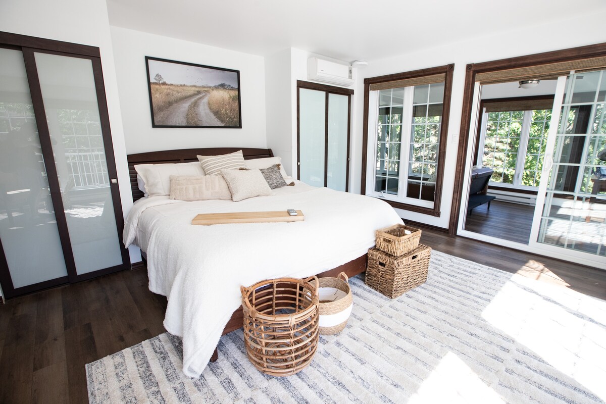 CITQ # 310114 Pouvant accueillir de 2 à 6 personnes, vous retrouverez à l'intérieur tout le nécessaire pour vous sentir comme chez vous: 2 lits queen et 2 lits jumeaux, tous les électroménagers, l'internet haute vitesse, la télévision câblée, des jeux de sociétés, une bibliothèque, tout ce qu'il faut pour les repas (vaisselle, batterie de cuisine, ustensils, thé, café) et enfin literie complète. Nous favorisons les séjours calmes et tranquilles.