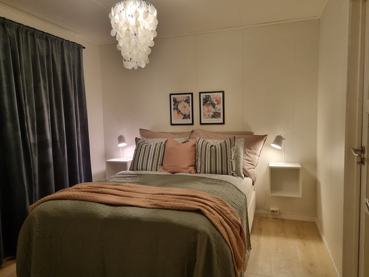 Op deze plek kun je dicht bij alles verblijven. De locatie is centraal en heeft gratis parkeergelegenheid voor twee auto 's. Het appartement heeft twee slaapkamers en een slaapbank in de woonkamer. Er is de mogelijkheid van extra bed en reiswieg voor peuters. Ruime badkamer met douche en een complete keuken. 15 minuten lopen naar het stadscentrum. 7 minuten lopen naar Telegrafbukta Goede busverbindingen. Het appartement is onlangs gerenoveerd in januari 2022. Wij wonen zelf zelf in de rest van het huis, dus feesten zijn niet toegestaan.