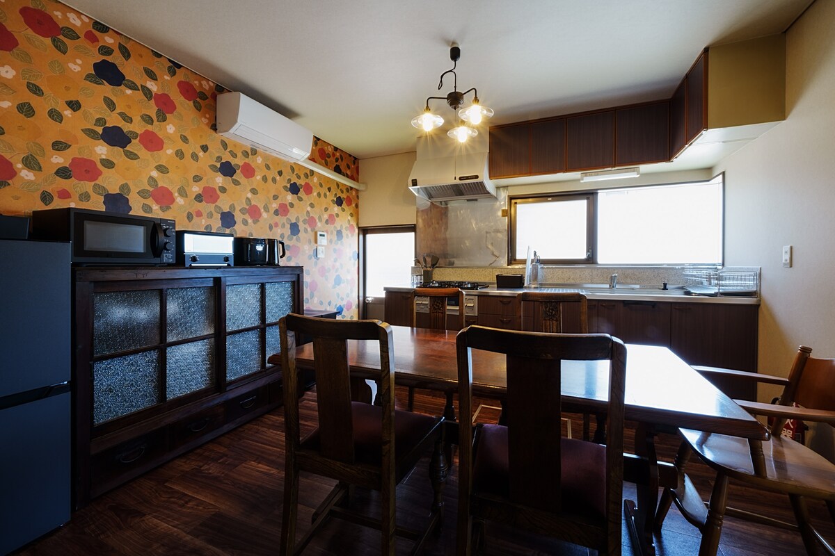 Welkom bij "BLIKIYA WA", een privéverhuurherberg aan de voet van de berg Fuji. Dit 60 jaar oude traditionele Japanse huis is gerenoveerd in een moderne Japanse stijl, waardoor een ruimte ontstaat die nostalgie en comfort harmoniseert. De tinnen platen, die ook de oorsprong zijn van de naam van het gebouw, zijn overal gerangschikt en de materialen zijn zorgvuldig afgewerkt. Terwijl we de traditionele textuur koesteren, hebben we de faciliteiten uitgerust om het comfortabel te maken voor buitenlandse gasten. Geniet van een rustig moment op deze plek met uitzicht op de majestueuze Mt. Fuji. ◆ Locatie: handige en emotionele locatie Het is 5 minuten lopen van station Gekkoji en 10 minuten lopen van station Shimoyoshida. Fuji-Q Highland ligt op 2 haltes met de trein, het meer Kawaguchiko ligt op 3 haltes en Gotemba Outlet ligt op ongeveer 40 minuten rijden. Er zijn Showa retro restaurants en winkelstraten in de buurt, zodat je heerlijk rond kunt lopen. Uitzicht op◆ de berg Fuji: je kunt het prachtige uitzicht op loopafstand zien Vanaf de 'Honchou 2-chome winkelstraat', die 1 minuut lopen is, en Pagode, op 12 minuten lopen, zie je de prachtige uitstraling van Mt. Fuji. Er zijn ook tal van faciliteiten in de ◆ buurt. Er is een supermarkt en kortingswinkel op minder dan tien minuten lopen, waardoor het handig is voor langetermijnverblijven. Kleine winkels, cafés en izakayas liggen op loopafstand.