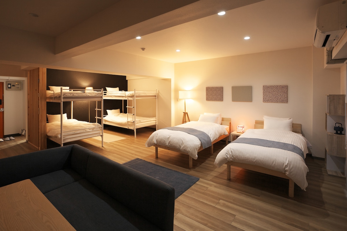 Gunstige locatie op 2 minuten lopen van Yamagata Station! Maximaal 4 personen, 1 queensize bed, 2 slaapbanken