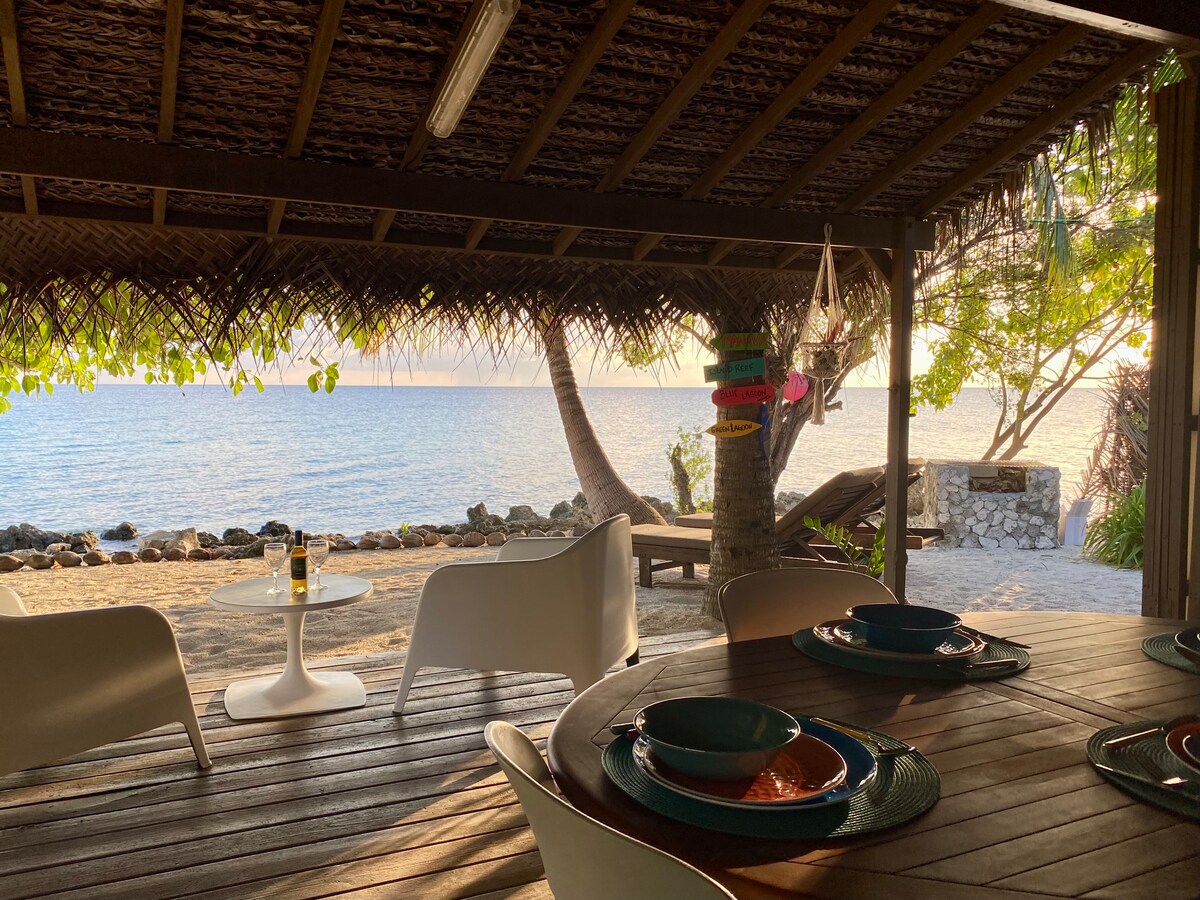 Uitzicht op zee vanaf je bed • Zonsondergangen en privéstrand 🌅🏝 Ideaal voor geliefden, huwelijksreizen en digitale nomaden Geniet van magische zonsondergangen en laat je wiegen door het geluid van de golven. Op 📍 700 m van de luchthaven, halverwege de belangrijkste duikcentra. 🏝 Toegang tot een privéstrand. Intieme 🌴 sfeer, tropische omgeving, ideaal om je batterijen op te laden. 💻 Wifi beschikbaar – perfect voor werken met uitzicht op de lagune. 🚤 Excursies, duiken en wateractiviteiten in de buurt.