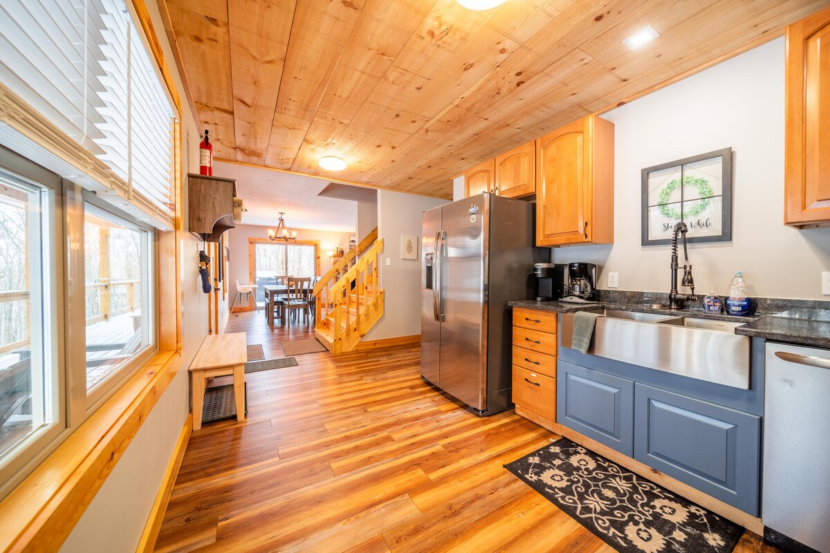 Gerenoveerde hut van alle gemakken voorzien, waaronder een *nieuwe* afgeschermde veranda met all-season kachels, grote eettafel en schommel op de veranda. Bak een pizza in de houtoven terwijl je kinderen op de trampoline springen of marshmallow roosteren. Geniet van wandelingen in en rond de Dolly Sods; in de winter, skiën, sleeën of metro; in de zomer, plons, boot en vlot op nabijgelegen rivieren. Gashaard. Wifi, kabel, SmartTV, Werkopstelling op afstand. Speelkast, fortbenodigdheden en speciale extra 's voor alle leeftijden.