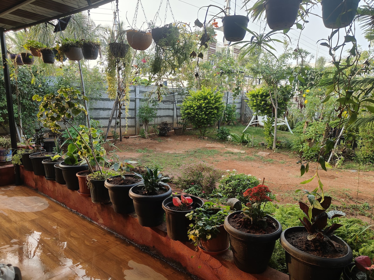 Want to stay close to nature in middle of the city, away from traffic sounds? A warm welcome to the Perch, which have a farmhouse feel with birds and peacocks in the middle of the city in front of central agricultural land where U have the complete private access to your penthouse with terrace garden and Amphitheatre