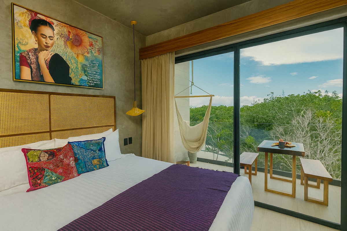 New & modern property located only 7 min. to the beach & walking distance to some of the best restaurants, shops and large supermarket. Everything you need for a great vacation. 2 free bikes, Fast internet, king bed, A/C, kitchenette,TV-Netflix; and access to incredible common areas (artificial cenote, jacuzzis, pool). Even your own private plunge pool & everything else you may need to make this your dream vacation.