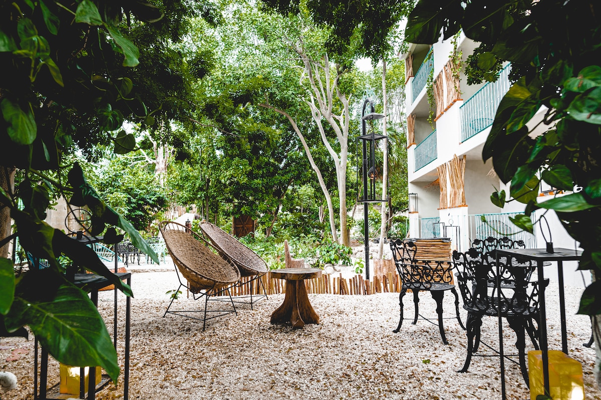 Geïnspireerd door de oude Casonas van Merida, en gelegen op slechts een paar meter van de hoofdstraat, omgeven door restaurants en bars met een ontspannen sfeer en tegelijkertijd weg van het lawaai is ons eigendom, zeer veilig omdat onze haven altijd gesloten is, maar met aandacht de hele dag. Vanaf hier kun je er gemakkelijk te voet komen of je kunt een fiets huren op veel plaatsen, zoals de archeologische vindplaats, de dichtstbijzijnde cenotes of het strand.
