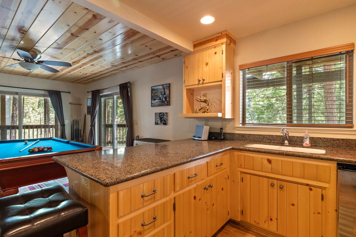 Escape to a charming cabin retreat in the Sierra Nevada, perfect for families seeking a blend of relaxation and adventure. Nestled in a private, gated community, this cabin offers a unique experience, once a favorite of a visionary tech founder. Enjoy the warmth of original knotty pine interiors, two decks with mountain views, and a downstairs game room for family fun. Just minutes from Pinecrest Lake and Dodge Ridge, enjoy lake days, ski runs, and explore nearby attractions like Twain Harte and