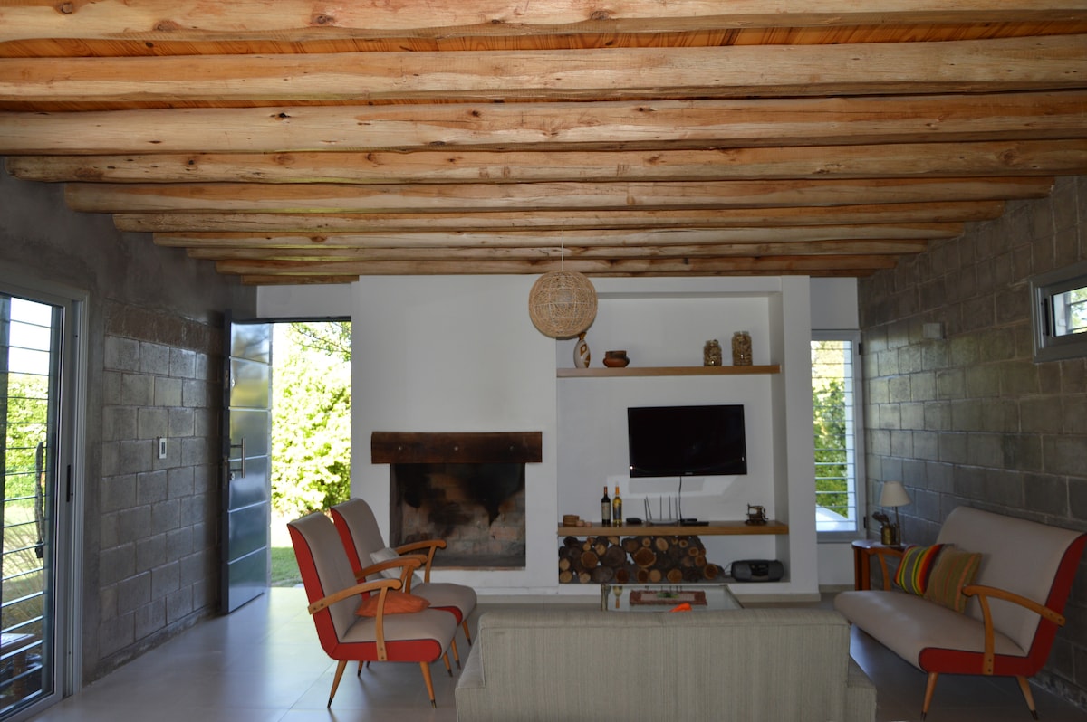 Landelijk boetiekhuis ontworpen in geselecteerde stenen direct van de berg, glas, cement en ijzer met een spectaculair uitzicht op de Cordillera de los Andes, grote olijftuin en omgeven door de meest gerenommeerde wijnmakerijen van Mendoza. Voorzien van grote keuken , kamer met terras en 2 ruime badkamers . Het is gelegen op een zeer veilige plek met privébewaking 24 uur, 5 minuten met de auto van de stad Chacras de Coria. Een ideale plek om er tussenuit te zijn.