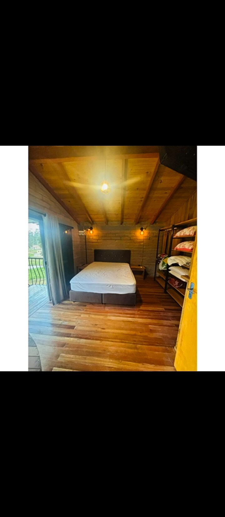 Huisje met houtkachel en open haard, voldoende ruimte en een kinderspeelplaats om plezier te hebben. Gelegen op 30 minuten van Serra da Rocinha, te midden van de natuur, met een bevoorrecht uitzicht op de bergen van Serra Geral, watervallen en de bron van de Amola Faca River. Het heeft een rustieke feestkamer met een barbecue en houtkachel, waardoor je kunt genieten van momenten van ontspanning met vrienden en familie. De boomgaard met verschillende seizoensfruit is ter beschikking van de gasten .
