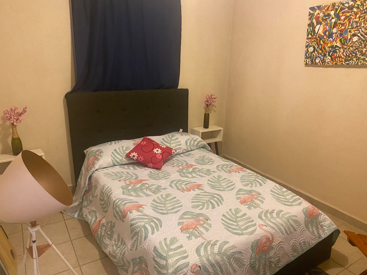 Deze unieke woning met airconditioning is uitgerust om het grootste comfort te bieden waar je van kunt genieten met je dierbaren in een voldoende ruime, functionele en comfortabele ruimte. Het heeft ook groene gebieden, plantenbakken, hangmatten, een kitchenette (gedeeld met een ander appartement) en een gemeenschappelijke ruimte waar je kunt genieten van een aangename tijd.
