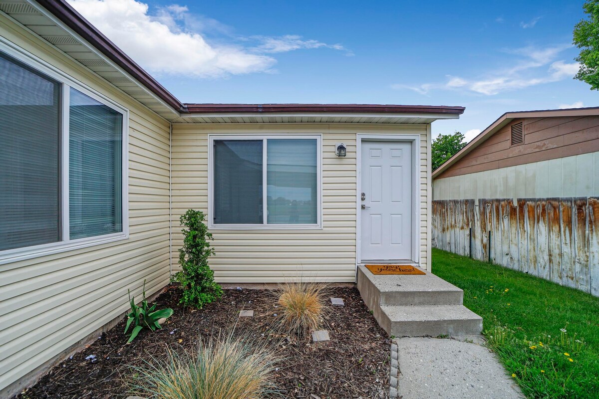 Welkom in je thuis weg van huis in het prachtige Twin Falls! Ons gezellige privéhuis met 3 slaapkamers en 1 badkamer biedt een comfortabel en uitnodigend verblijf voor gezinnen, stellen of kleine groepen. Geniet van snelle en gemakkelijke toegang tot lokale restaurants, winkels en attracties. Of je nu de stad verkent of de natuurlijke wonderen van Zuid-Idaho verkent - van de iconische Shoshone Falls (de "Niagara van het Westen") tot de schilderachtige Snake River Canyon, deze charmante retraite is de perfecte plek om te ontspannen na een volledige dag.