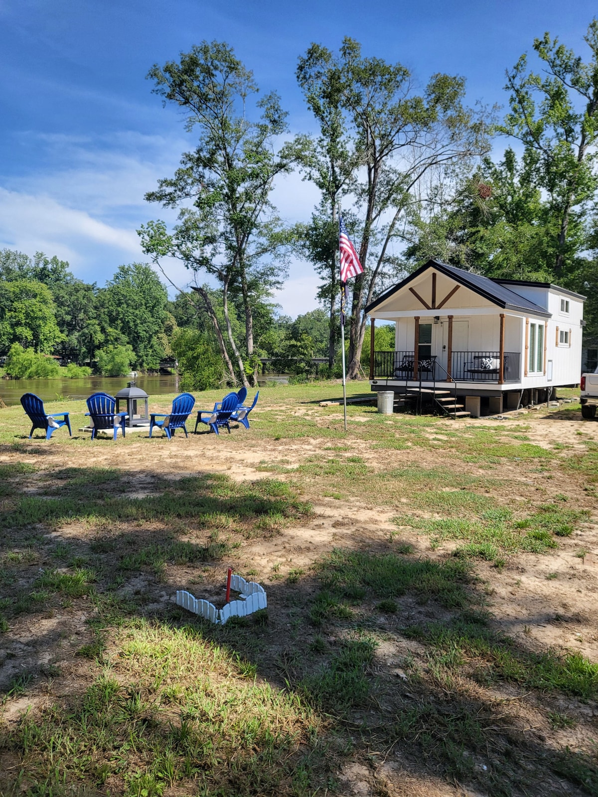 Het best bewaarde geheim in Texas! 2 uur ten noordoosten van Houston; pak een herfstuitje of breng de vakantie door met een nieuw hot tub buiten inbegrepen! Onze recensies zeggen alles! Wil je ontspannen en opladen? Vanaf het moment dat je een eigen omheinde oprit afrijdt, vergeet je al het andere. Een overvloed aan privélevensruimtes in de buitenlucht; koffie drinken op het dok; loungen op het zonnedek of verzamel je in het prieel. Buiten-/binnentafels, 85 inch tv voor filmavond. Moderne en volledig gevulde keuken!