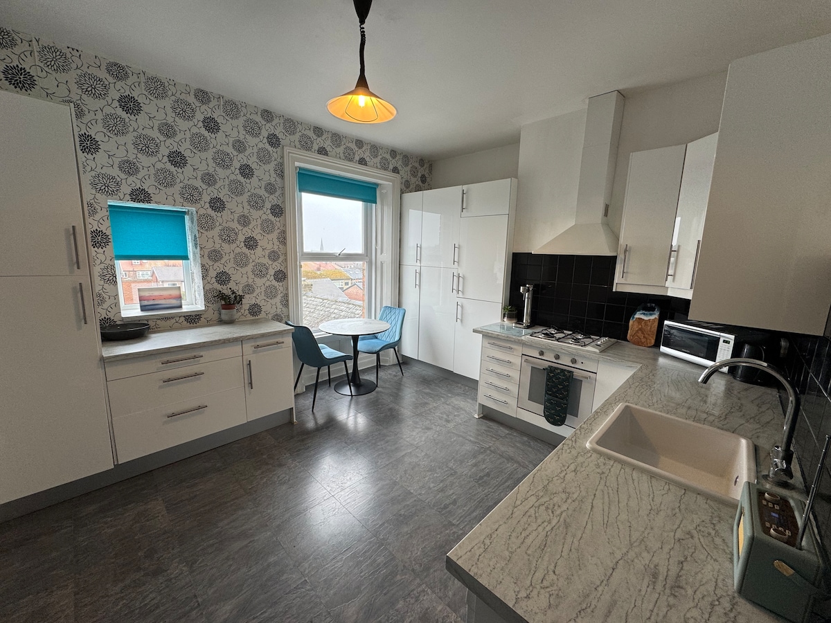 Grote ruime flat die bestaat uit twee tweepersoonsslaapkamers met zeer comfortabele bedden, een en-suite met douche en een met een aparte badkamer met een bad en douche. Handdoeken, shampoo, enz. en föhn allemaal aanwezig De lounge, eethoek en moderne keuken bevinden zich allemaal in een grote open ruimte en met alle apparatuur die je nodig hebt. Elegant ingericht, en op een steenworp afstand van Gosforth High Street Gratis parkeren met een vergunning voor de duur van je verblijf Perfect thuis weg van huis