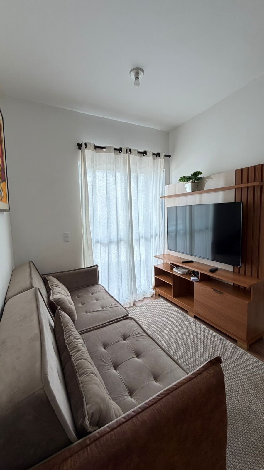 Apartamento moderno e completo com 2 quartos sendo 1 climatizados (camas queen) tv’s smart, cozinha equipada, sala com sofá-cama e Smart TVs. Garagem coberta, self check-in, piscina e área de lazer no condomínio com mercado interno e quadra esportiva.