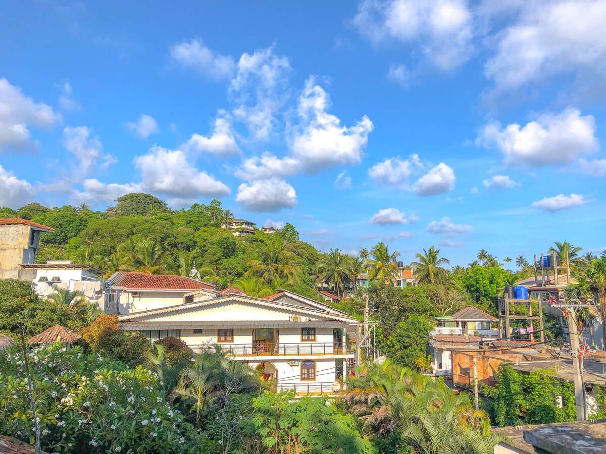 Ontspan of werkvakantie met het hele gezin op deze rustige plek om te verblijven. 4 slaapkamers met 3 airconditioning kamers. 500 m naar Weligama Surfing beach. 700m naar Weligama City. Alle gloednieuwe apparaten zijn inbegrepen in deze accommodatie. ** SNEL GLASVEZELINTERNET bij JE DISPOSAL.ideal voor werk- EN vakantieopstelling** 3 barthrooms met warmwatervoorziening. Volledig uitgeruste keuken met koelkast. Wasmachines en smart-tv Back-up Generator. Erg rustige en coole ruimte voor je vakantie.