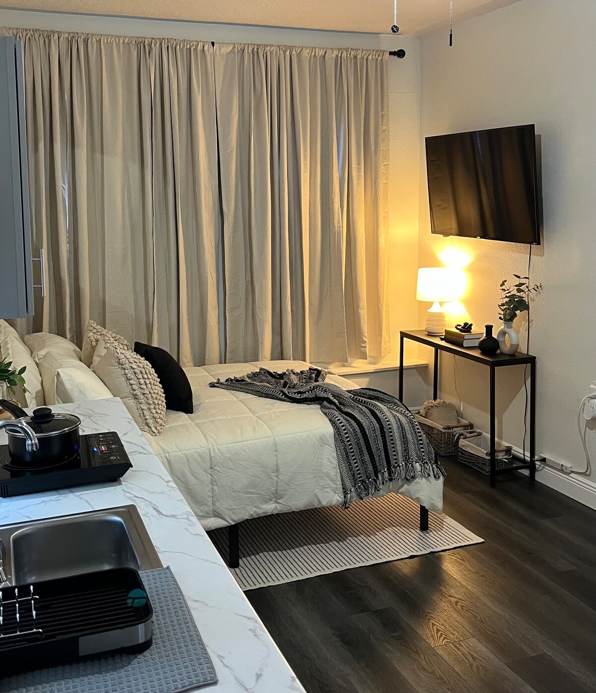 Soon as you enter our doors, you'll be enchanted by the blend of modern design with a homely atmosphere. It’s a single-room marvel that offers a comforting sanctuary. Immerse yourself in lines, tasteful furnishings, and a subtle color scheme that sets the stage for a stay. Modern amenities are at your fingertips.Sink into top-quality linens as you bask in the comfort of this space. We guarantee that you wake up feeling refreshed and prepared to embark on a brand new day filled with experiences.