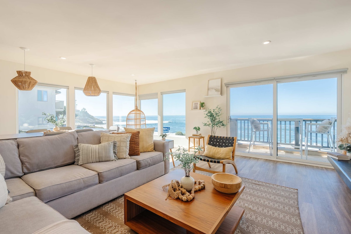 Let op: Moet 25 jaar of ouder zijn om onze woning te huren. Prachtig gerenoveerd appartement met 2 slaapkamers aan het strand met uitzicht op zowel het strand als de baai. Geniet van het kijken naar de golven die naar binnen rollen of een prachtige zonsopgang door kamerhoge ramen zonder ooit uit je kingsize bed te komen. Open 's avonds je voordeur om getuige te zijn van adembenemende zonsondergangen boven de baai. Of ontspan gewoon met een drankje op het balkon aan het strand en luister naar de golven met volledig 100% uitzicht op het strand en de oceaan.