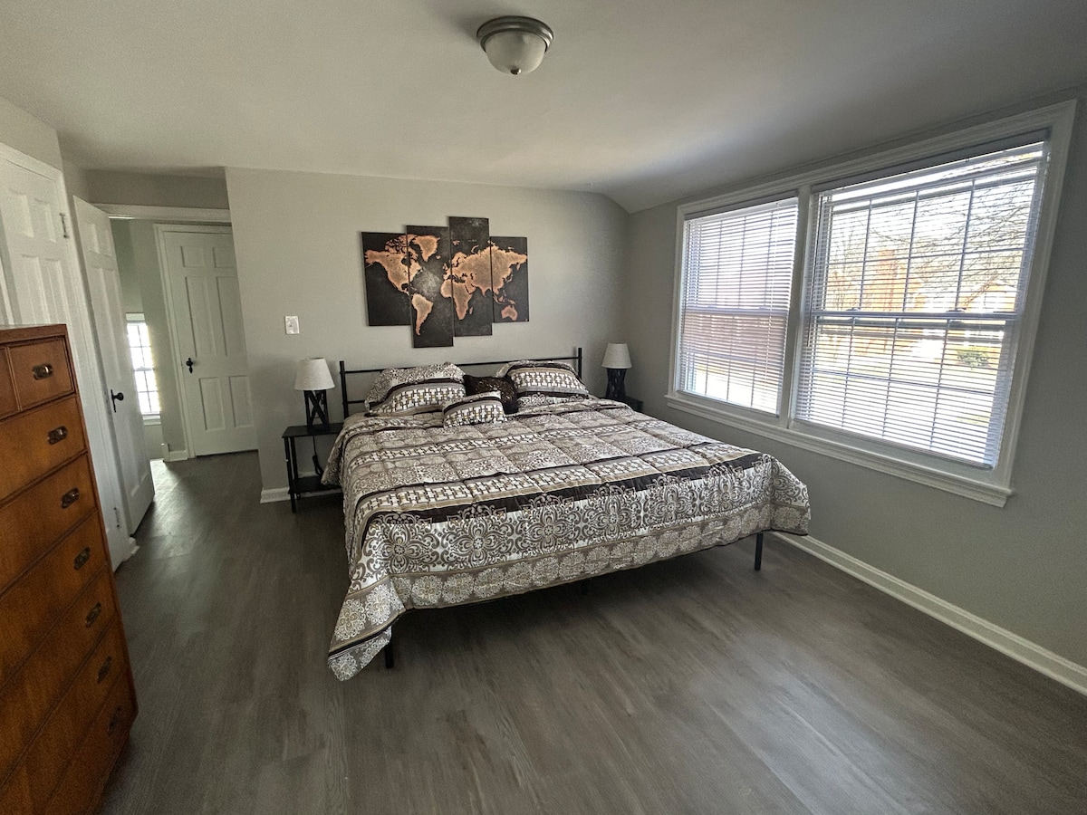 Een uitnodigende woonkamer met dubbele banken, een ruimte om te werken met een bureau en een stoel. Een slaapkamer met een queensize bed, luxe beddengoed en verduisteringsgordijnen om je te helpen een goede nachtrust te krijgen. Keuken met full size koelkast, gasfornuis, magnetron, Keurig koffiezetapparaat, broodrooster. Eettafel met zitplaatsen voor vier. 11 minuten rijden naar Cleveland Clinic, University Hospitals & Case Western Reserve. Cleveland Art Museum, Cleveland Botanical Gardens en het centrum van Cleveland. 2e verdieping lopen naar boven.