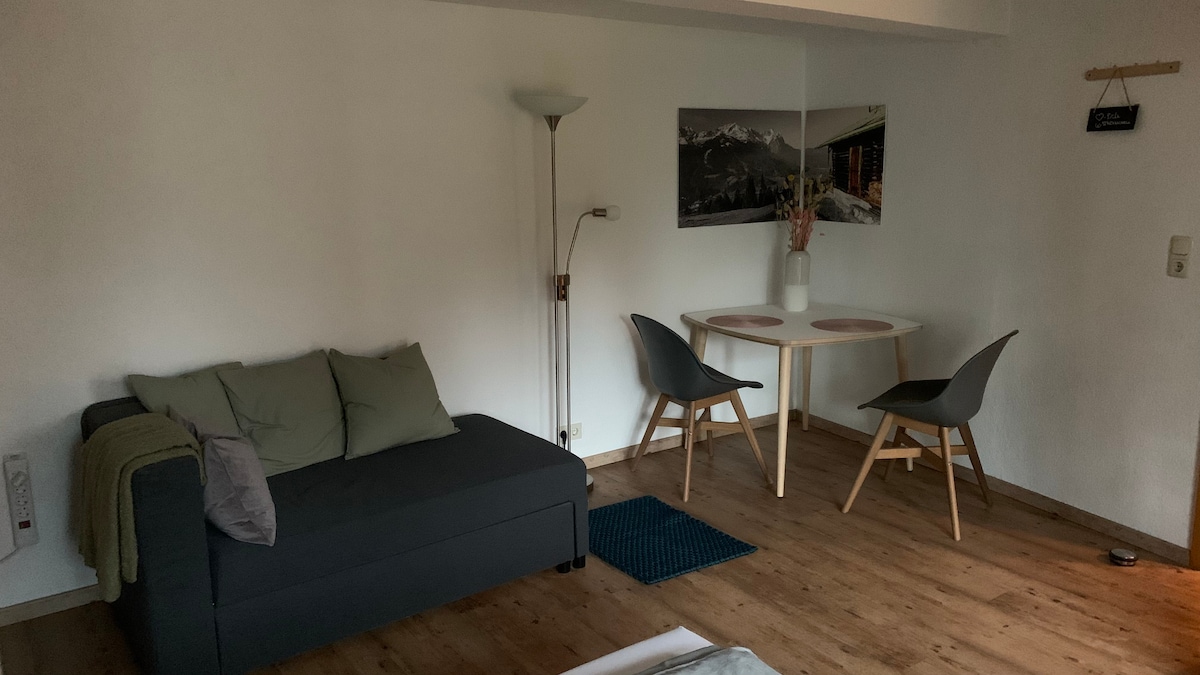 Gezellig appartement met één slaapkamer op de eerste verdieping (een boven de begane grond) in een huis gelegen in een rustige straat tussen het centrum van Garmisch en het Hausberg-gebied. De flat heeft een noord- en zuidbalkon. Gasten kunnen gebruik maken van één ondergrondse parkeerplaats. Persoonlijke informatie (naam, adres, geboortedatums, enz.) moet door ons worden gegeven voor het kantoor van GaPa-Tourist. Huisdieren zijn welkom, maar honden mogen niet alleen in de flat verblijven als ze blaffen.