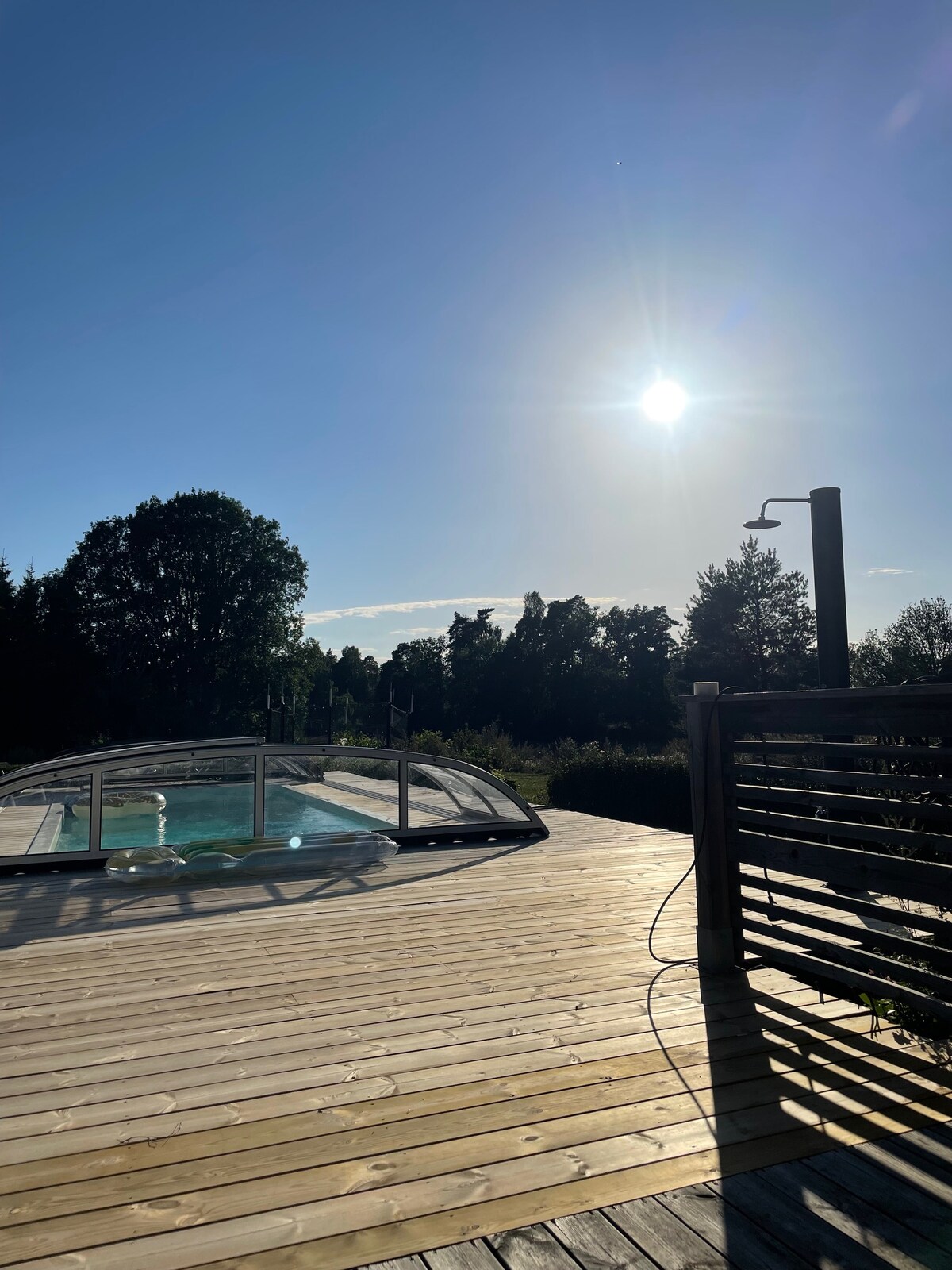 Welkom in ons charmante gastenverblijf van 33 m² met uitzicht op zee, midden in de natuur en op zwemafstand van de zee. Ontspan op het grote terras, geniet van wandelingen langs het water, zwem vanaf de steiger of het ondiepe strand. Het huisje is onlangs gerenoveerd, volledig uitgerust en opgemaakt en klaar bij aankomst. Sauna en bubbelbad met uitzicht op de oceaan zijn beschikbaar tegen betaling. Fietsen zijn beschikbaar om te lenen en restaurant Skeppskatten is vlakbij. 160 bed + extra bed voor kinderen.