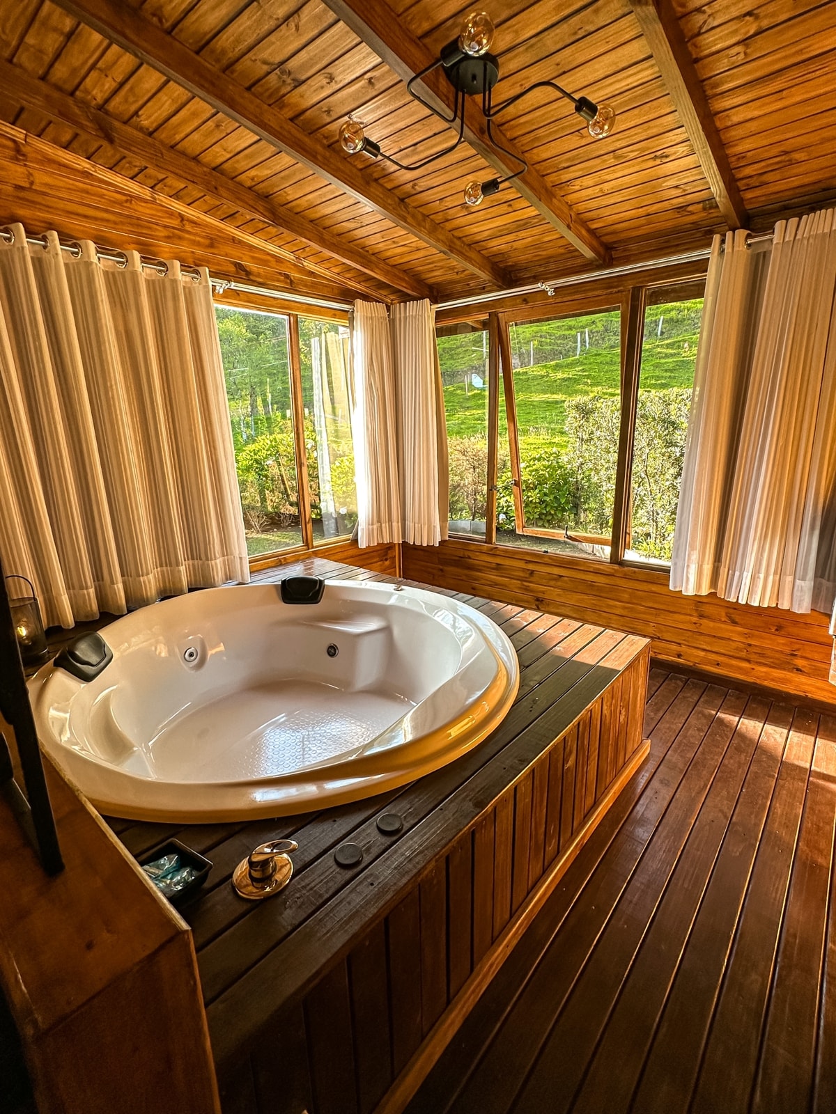 Curucaca-huisje, met koffie en badkuip.