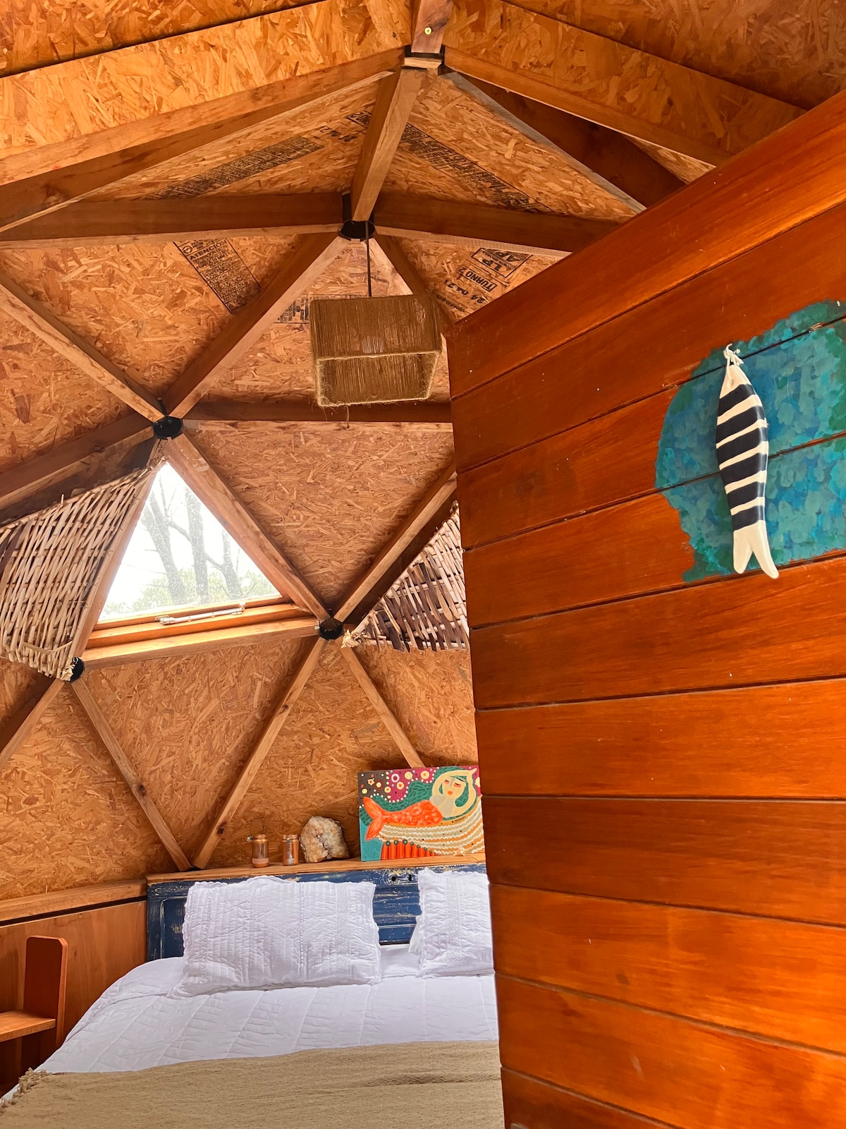 Relájate con toda la familia en este alojamiento donde la tranquilidad se respira. Un lugar rodeado de bosque y fauna nativa. En la naturaleza y cerca de la ciudad. El.domo tiene una cam matrimonial y otra simple. Cuenta con un baño exterior privado. Hay una pequeña cocinita solo para hervir agua y o calentar algo simple. Te ofrecemos alimentación casera vegetariana o vegana, clases de yoga y meditación, masajes relajantes y conciertos de sonidos. si te interesa podemos enviarte los valores .