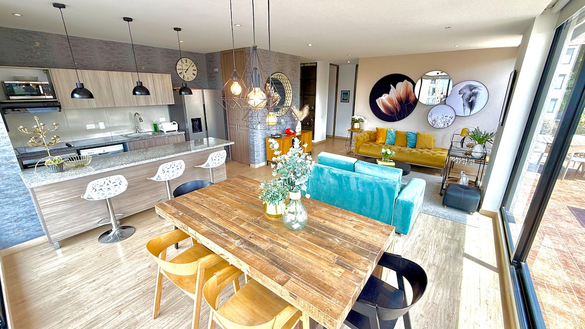 Gloednieuw appartement met een prachtig uitzicht over Bogotá en de bergen vanaf een acht verdieping. Een moderne, Scandinavische en minimalistische stijl met een gezellig privéterras perfect voor Bbq en samenkomen met vrienden of stel. Centrale ligging, dicht bij Usaquen markt en restaurants, gemakkelijke toegang en vervoer. De perfecte keuze voor één persoon of een jong stel. Het appartement heeft 1 slaapkamer, 1,5 badkamers en is voorzien van wasmachine/droger en koelkast, eigen parkeerplaats en beveiliging 24 uur per dag.