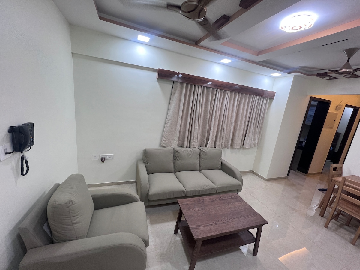 Welcome to Sanidhya, peaceful 2BHK nestled in the lap of the Sahyadri mountains just a short drive from Panvel. - What You’ll Love: - Calm and cozy interiors curated for a relaxed vibe - Gorgeous mountain views - Two airy, sunlit bedrooms with peaceful vibes - Tastefully done spaces, perfect for lounging - Equipped kitchen to make you feel at home - Surrounded by greenery, nature walks just a step away - Ideal for remote work, solo getaways, couple stays, or peaceful family tim