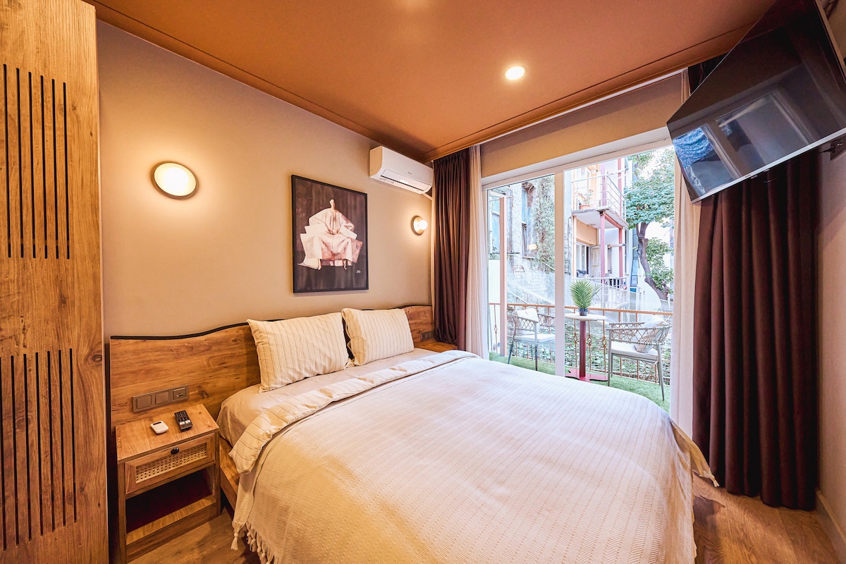Dit charmante hotelappartement biedt een unieke mix van eenvoud en elegantie met zijn moderne, verfijnde design. Perfect voor twee personen of een stel, het beschikt over een comfortabel tweepersoonsbed, een goed uitgeruste kitchenette, een eigen badkamer en een 40-inch smart-tv. Grote ramen . Ideaal gelegen op steenworp afstand van de kust van Ortaköy, de Bosporus-brug, beroemde kumpir- en wafelwinkels en het historische hart van Ortaköy in het centrum van Istanbul.