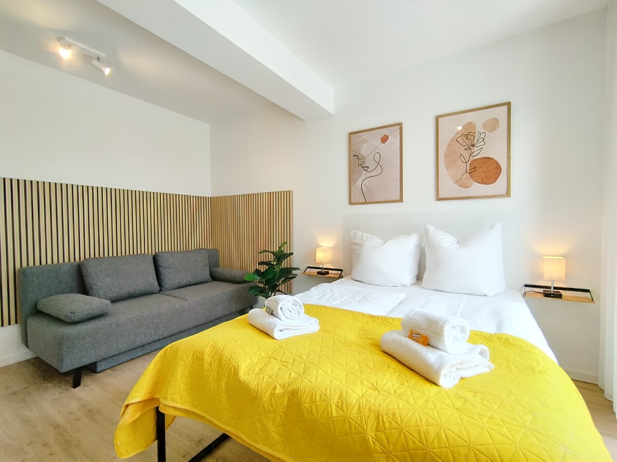Studio-appartement van 31 m² met terras ♥ Queensize bed en hoogwaardige slaapbank voor 2 extra gasten ♥ Terras met zithoek en eigen barbecue ♥ Moderne, volledig uitgeruste keuken met magnetron en koffiezetapparaat ♥ Gezellige eethoek voor maximaal vier personen ♥ Smart-tv met Disney+ en snelle wifi ♥ Stijlvolle badkamer met XXL douche ♥ Babybedje en kinderstoel aanwezig ♥ Wasmachine en droger in het huis voor gratis gebruik ♥ Gratis parkeerplaatsen op 200 meter afstand