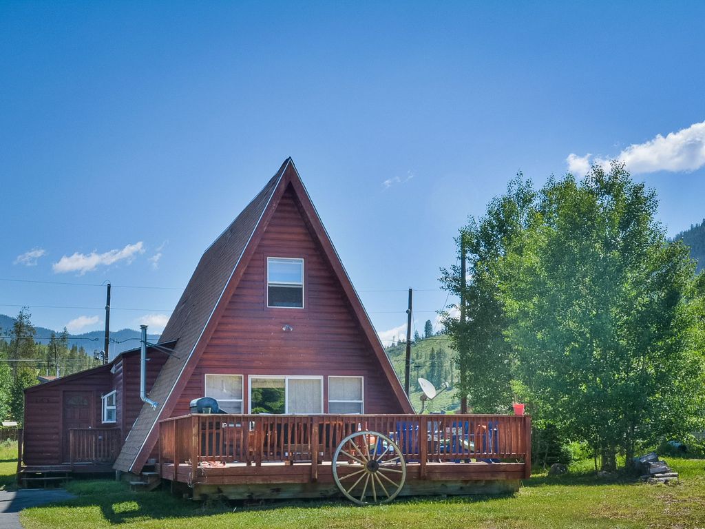 Secluded mountain chalet on 2 acres w/ private deck & shared hot tub overlooking Breckenridge ski resort 1 m from town. Renovated cabin w/ amazing views. 1 mile to free skier & town parking. Wolves, moose & bear visit often. The house has a large, light filled great room, modern furniture, and wood & gas burning fire places. Upstairs are two large bedrooms, bathroom, & washer/dryer. Min. 3 nights. 4th & 5th & 6th night receive $60/night discount each. Long term rental unit on-site.