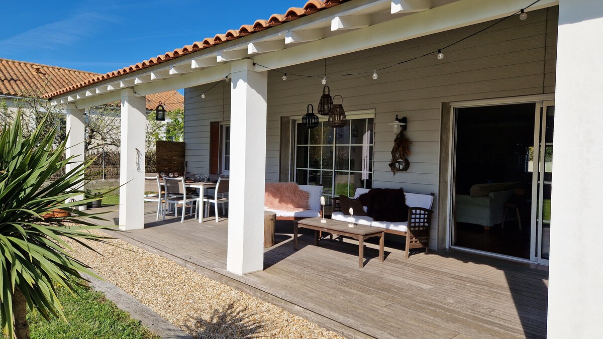 Romantisch huisje met vijf sterren, in de buurt van het strand van Guittière. Voor een welzijnsverblijf. Volledig uitgerust cocooninghuis, met balneotherapie en lichttherapie en laat je verwennen in een groene omgeving, in het hart van het platteland! Geniet van een moment van ontspanning, mogelijkheid tot duo massages, binnen of in de tuin met het vogelveld! Voor je comfort en om te verblijven in deze bubbel van welzijn kan chef-kok Romuald Chevalier je een gastronomische maaltijd bezorgen!