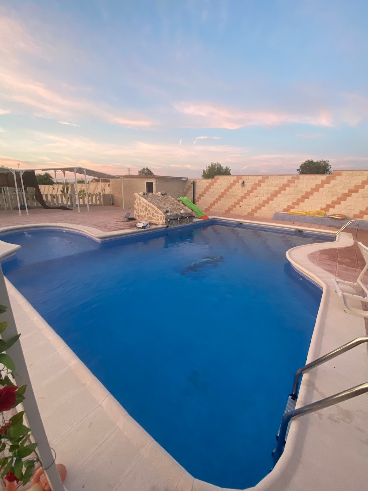 Ruim huis op een groot terrein, met ruime tuin, privézwembad, privézwembad en barbecue. Het huis heeft alle voorzieningen: airconditioning, 3 badkamers, volledige keuken, WiFi, grote woonkamer, tv, enz. Halverwege tussen Madrid en Toledo, op slechts 35 km van beide steden en met de snelweg op minder dan 2 km van de urbanisatie.