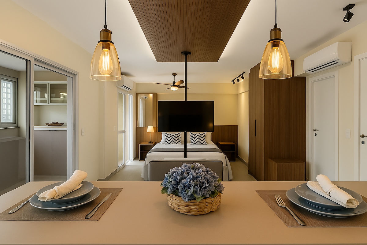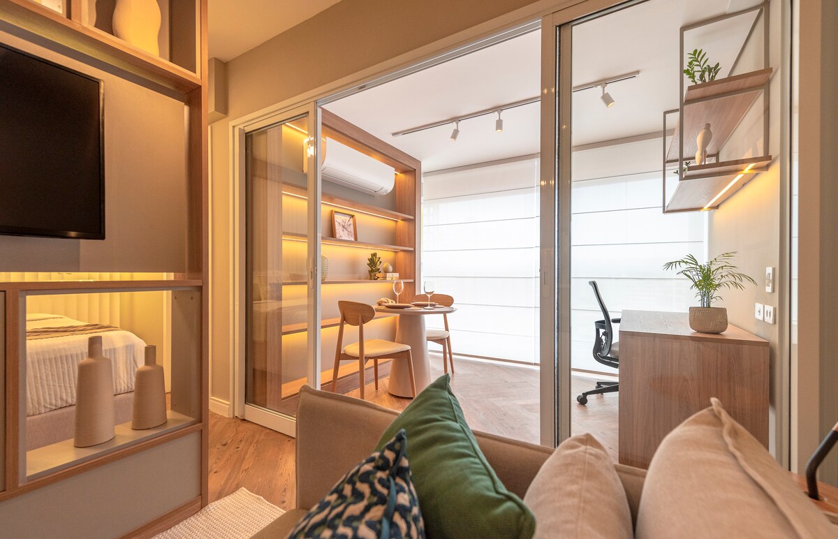 Ervaar comfort en functionaliteit! We hebben een modern appartement voorbereid, ingericht met veel genegenheid voor je verblijf. Je zult je thuis voelen. Gemoedelijke sfeer met: Volledige keuken, zonnig balkon, tweepersoonsbed met kast, smart-tv, wifi, airconditioning en nieuw, zacht bed/badlinnen! En meer: naast een charmante studio en recreatie in het appartement, ben je op een bevoorrechte locatie, dicht bij het Jequitibás-bos, Av. Norte-Sul en Cambuí, met geweldige restaurants en cafés.