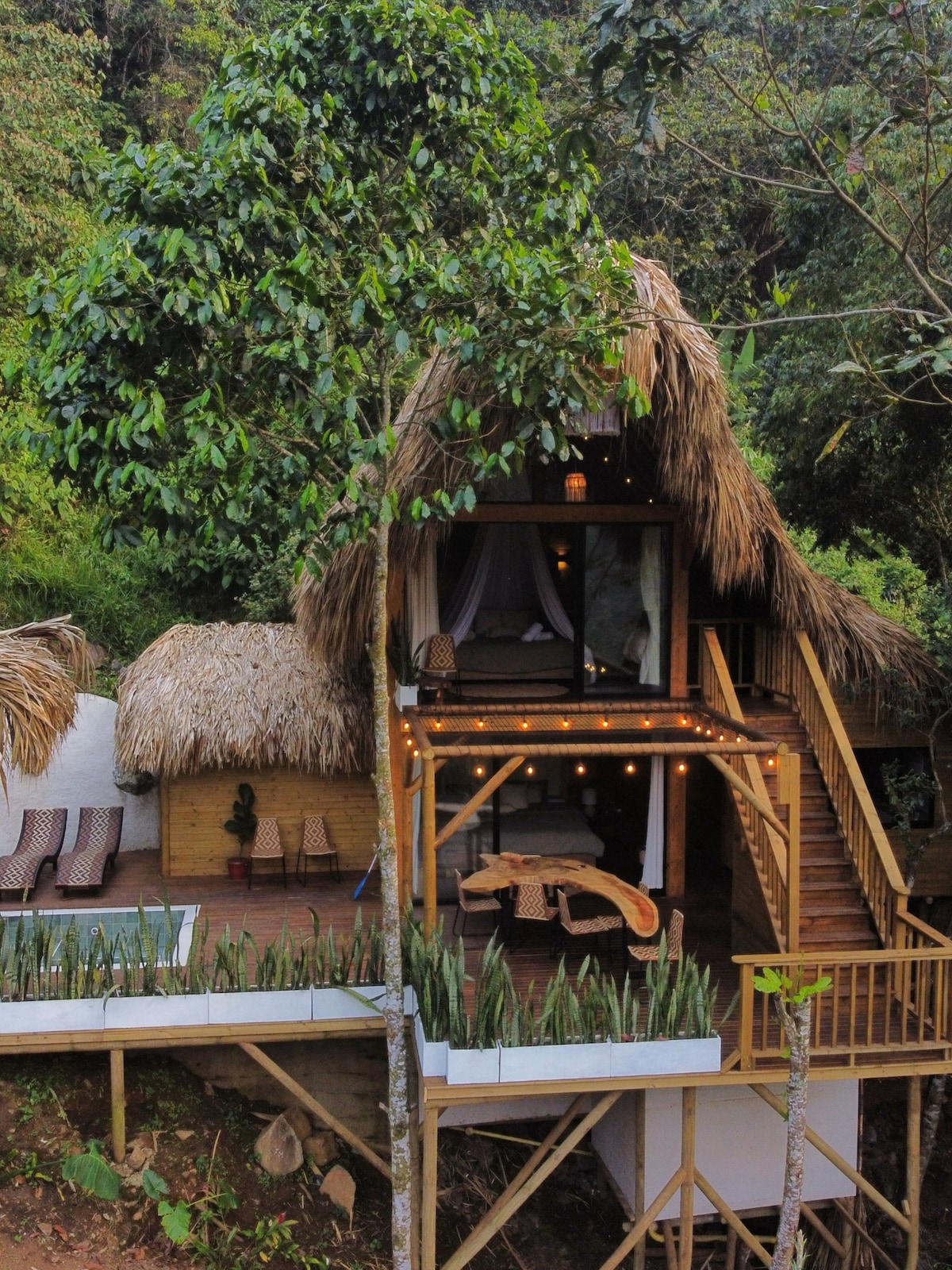 In de weelderige natuur van Risaralda, met een uniek landschap midden in de Rio Consota Canyon, ligt de Cabaña. Omgeven door bomen, prachtige vogels en het speciale geluid van de rivier. Geniet van een ochtendkoffie terwijl u de zon achter de bergen ziet opkomen, terwijl de wolken tussen de canyon dansen. Neem een warm bad in de hot tub terwijl je geniet van de geluiden van de nacht, de maan en de sterren.