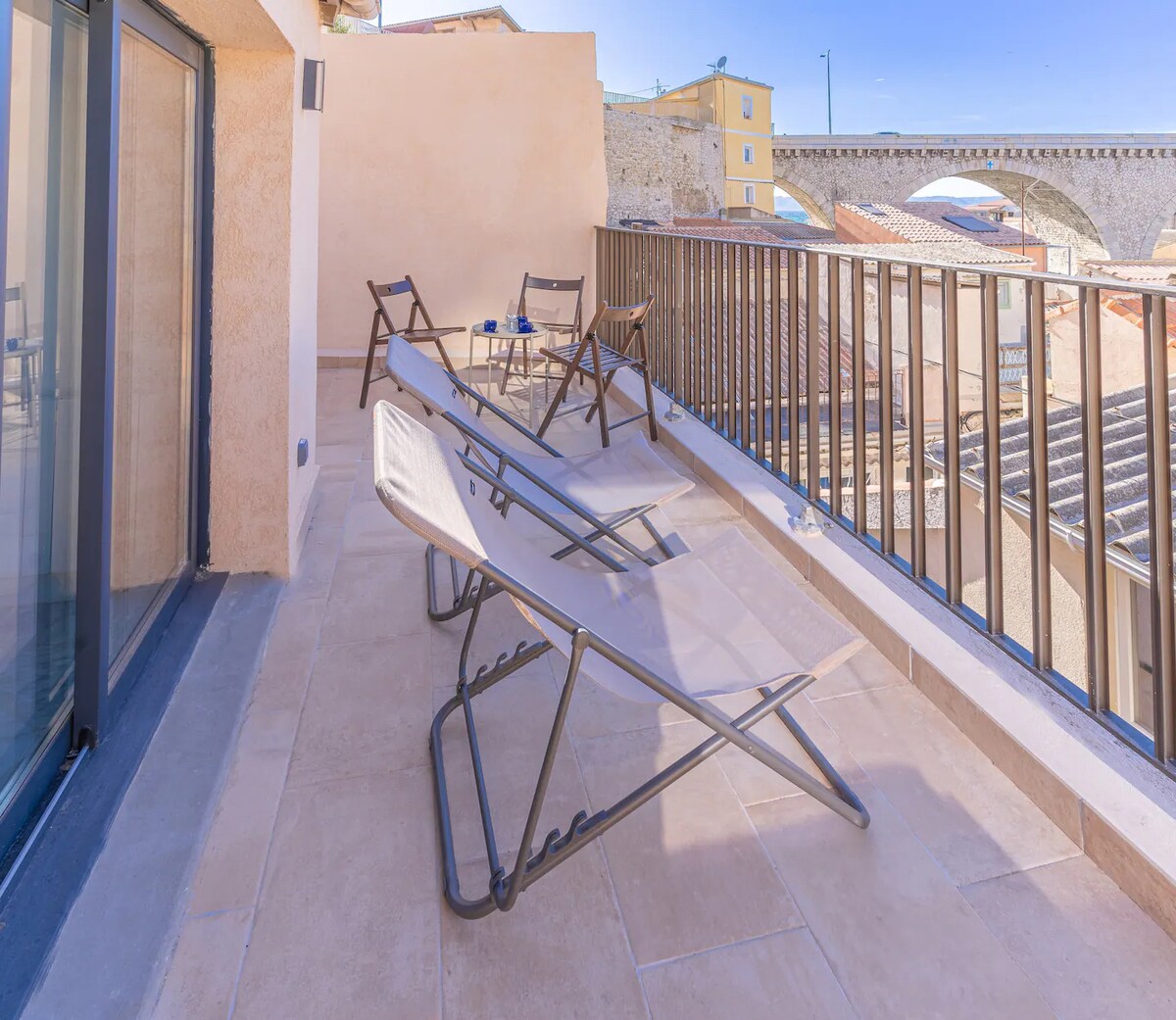 Appartement 2 kamers en een prachtig terras naast de zee tussen het Catalaanse strand(bereik) en de Vallon des Auffes. 30m2 met terras van 20m2, volledig gerenoveerd en uitgerust. Je wordt verleid door de locatie, dicht bij de zee, naar de Vieux-Port, toeristische plaatsen en gemakken; door de eigentijdse inrichting en vooral door de rust en het mooie exotische houten terras.