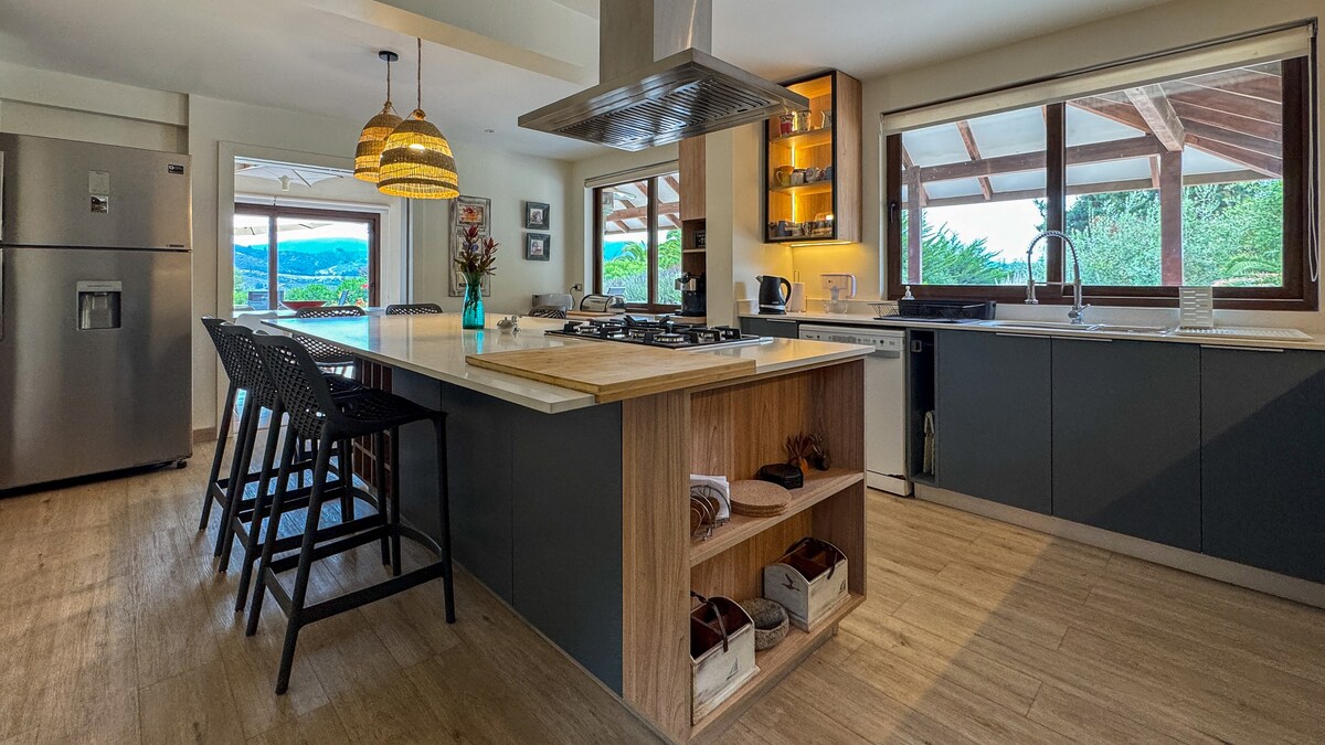 🌅 Welkom bij Casa Bosquemar de Tunquen Een ruimte die is ontworpen om de verbinding te verbreken. Hier gaat de tijd langzamer, ruikt de lucht naar bos en nodigt elke hoek je uit om te rusten. Vanaf de terrassen kun je genieten van een rustig en open zeezicht, perfect om de dag met een kopje koffie te beginnen of af te sluiten met een glas wijn bij zonsondergang. Dit huis verwelkomt al meer dan tien jaar gasten en staat altijd bekend om zijn warmte, comfort en het gevoel dat je weg bent van het lawaai, maar toch dicht bij alles wat je nodig hebt.