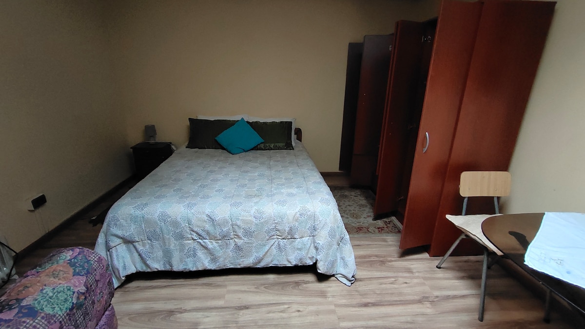 Gezellige ruimte met toegang en eigen badkamer gelegen in residentiële en veilige sector van Villa Alemana aan de grens met Quilpué. De kamer heeft een tweezitsbed. Wij leveren beddengoed en handdoeken, de kamer is ruim en zonnig en heeft een tafel die kan functioneren als bureau en kast. We hebben een waterkoker, een magnetron, een minibar, een servies, een kop en een kopje. Daarnaast is er een dispenser met water-, thee- en suikerdispenser om de aankomst van onze gasten aan te moedigen. We ontvangen geen kinderen, we ontvangen geen kinderen
