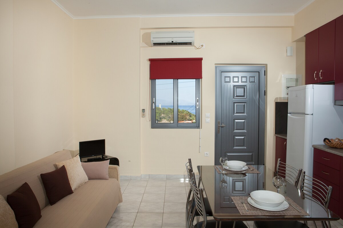 Το διαμέρισμα έχει 1 μικρό υπνοδωμάτιο , μπάνιο , κουζίνα και σαλόνι με τραπεζαρία . Το κυριότερο όμως είναι η θέα που έχει σε όλο το Λακωνικό κόλπο εώς τα Κύθηρα . Το διαμέρισμα βρίσκεται στην πλαγιά του βουνού και απεχει1,5χλμ. από την παραλία Μαυροβουνίου και 1,2χλμ. από την πόλη του Γυθείου.