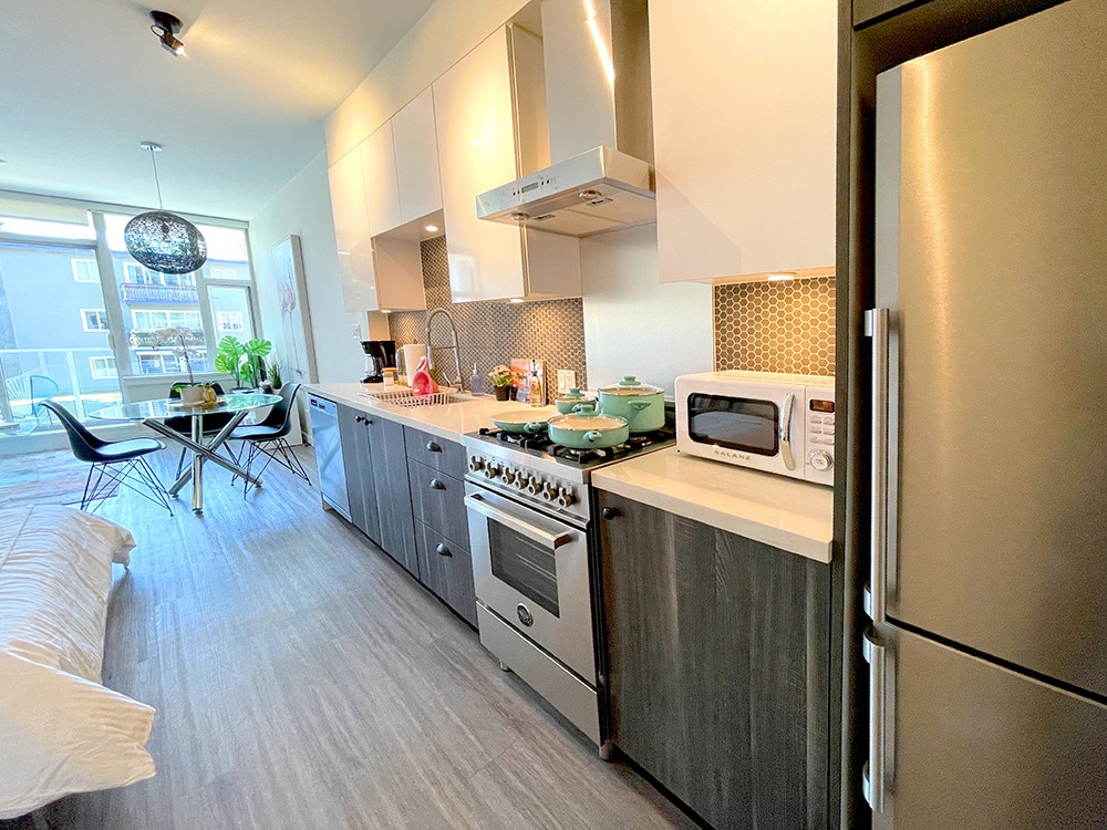 Welkom in je nieuwe huis, een luxe en goed ingericht appartement gelegen in het hart van Vancouver 's Olympic Village, een buurt die opzettelijk is gebouwd als een beloopbare gemeenschap voor het Olympisch Atletes' Village van 2010. Een station verwijderd van het centrum, twee blokken van de beroemde Seawall van Vancouver, en omringd door geweldige restaurants, bars en brouwerijen. Je bent ook op loopafstand van Science World en vele andere attracties, waaronder een rit van zes minuten naar het prachtige Granville Island.
