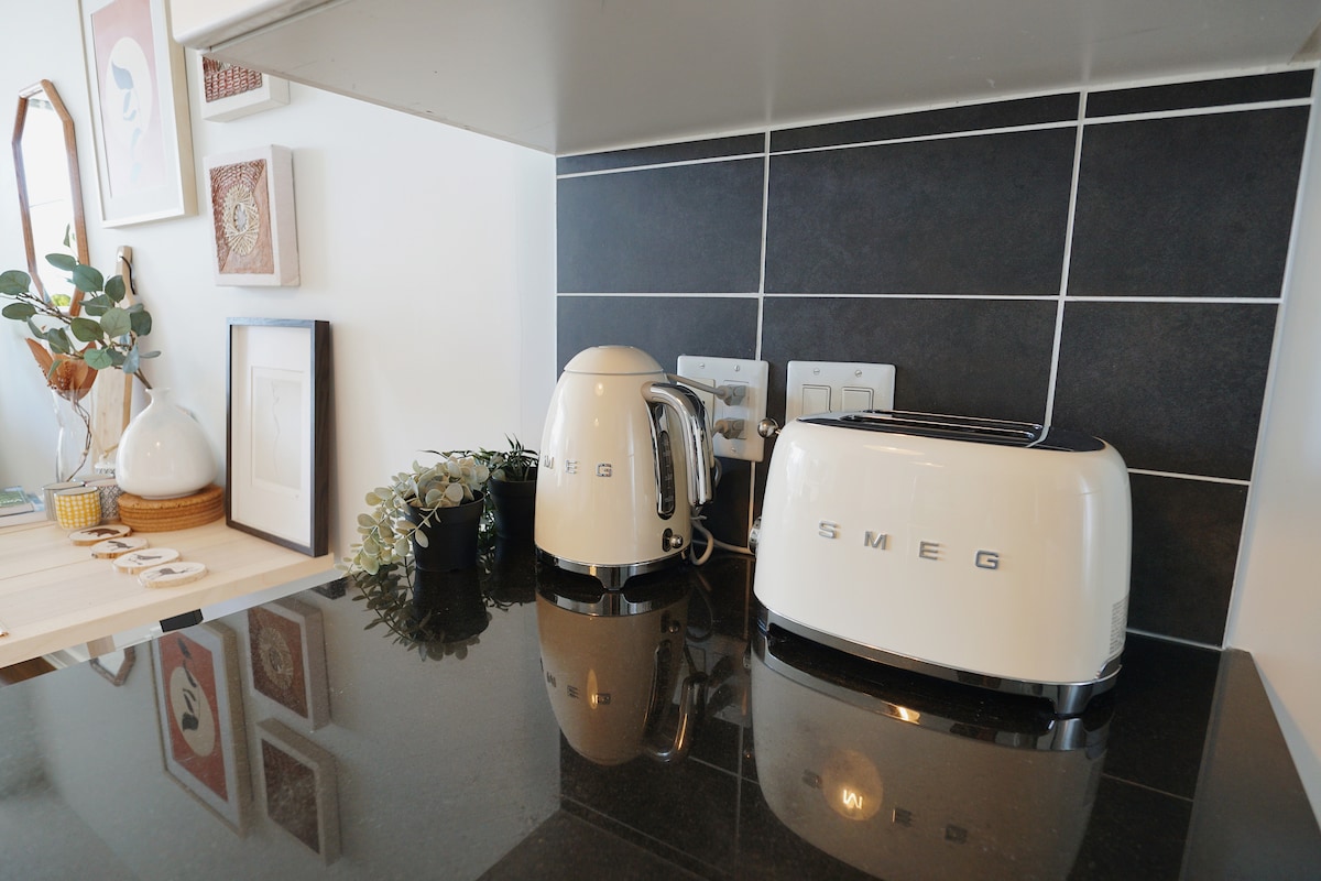 AMENITIES! AMENITIES! RELAX in a LUXURIOUS Steam Room, enjoy the serenity of the fireplace, as well as heated floors, 55” TV + all the channels. We LOVE where we live. Come see why! Hip, happening centrally located hood with great shops and the best restaurants. Designer suite with high end finishes, quartz counters, & all the “little extras”. Our house is on a quiet tree-lined St., a stone’s throw from amazing cuisine and the cultured vibe of Main Street. Free parking. Bus route 1 min. away.