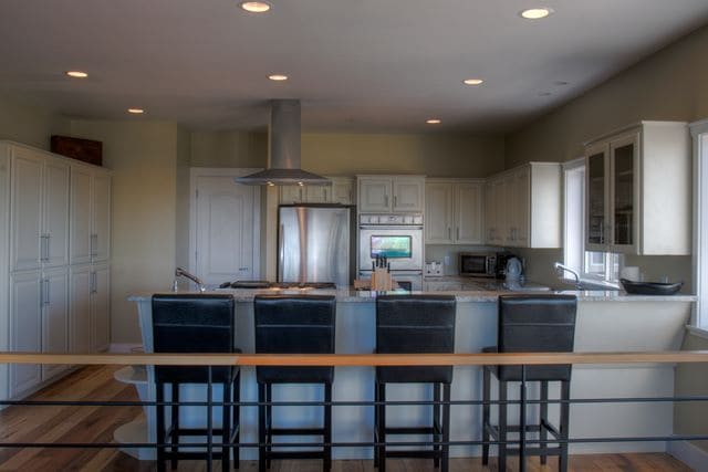 Moderne luxe op het strand met 180 graden zonsondergang aan de oceaan en uitzicht op de bergen! 24 voet uitklapbare deuren openen naar het 40’stranddek.. voel ontspanning neemt het over als het geluid van de golven naar binnen gaat. Spa-achtige badkamer met een 6’ x 5’ douche voor twee, compleet met dubbele douchekoppen en oversized regendouche in het midden. Kijk na zonsondergang een film op het 84inch 4K-scherm in volledige omgeving, of pak een van onze bordspellen en verzamel je rond de tafel met muziek voor het hele huis naar keuze.