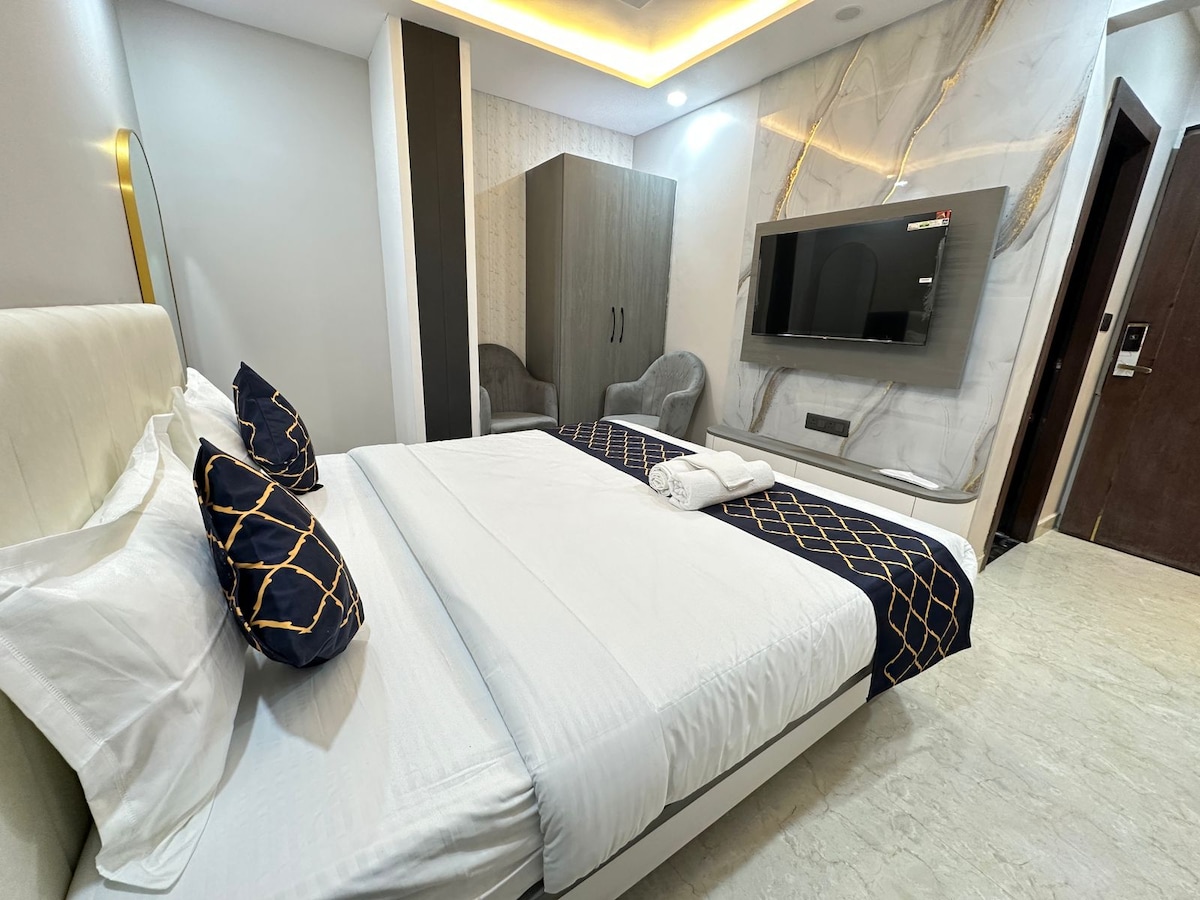 Luxe kamer in de buurt van de Kashi Vishwanath-tempel | Premium Comfort & Heritage-verblijf De kamer is ontworpen met een modern interieur en eersteklas voorzieningen en beschikt over airconditioning, pluche beddengoed en een goed uitgeruste badkamer. Gasten kunnen genieten van de levendige energie van de tempelstraten. Ideaal voor pelgrims, koppels en reizigers die zowel gemak als klasse zoeken, onze ruimte zorgt voor sereniteit op een steenworp afstand van het goddelijke. Boek nu om de ziel van Varanasi te ervaren, gehuld in comfort, luxe en traditie.