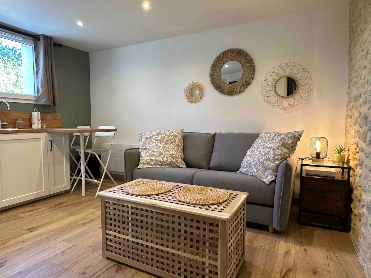 Mooie rustige bijgebouw met kleine slaapkamer, woonkamer met slaapbank voor probleemoplossing. Magnetron, koffiezetapparaat, waterkoker, broodrooster, koelkast voor je ontbijt. Hoewel er geen keuken is, kun je in een eigen terras op het zuiden met een kleine tuin en een barbecue in alle rust ontbijten en geïmproviseerde maaltijden nuttigen. Bed- en badlinnen aanwezig. Ik kan je gratis 2 fietsen aanbieden. De accommodatie is rookvrij.