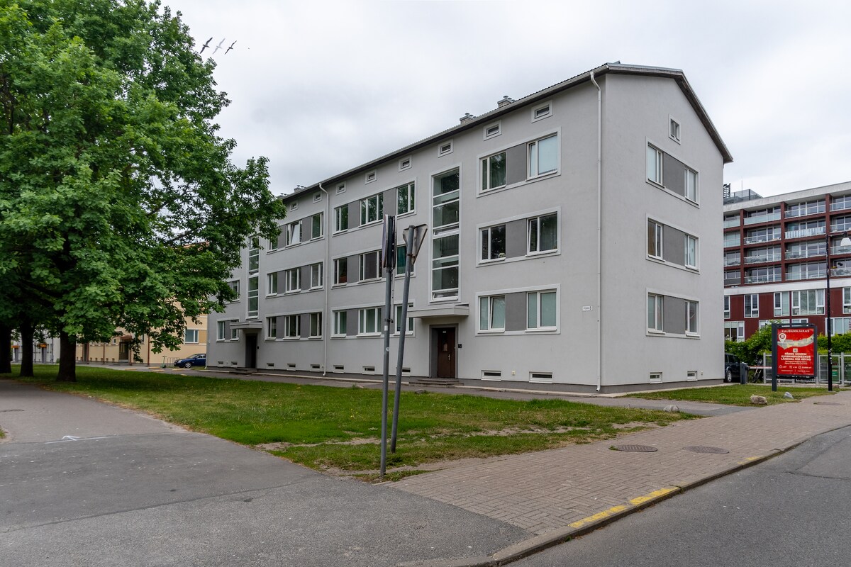 Dit ruime appartement met twee slaapkamers ligt in het hart van Pärnu en beschikt over een volledig uitgeruste keuken, twee kingsize slaapkamers en een balkon van 50 m² met uitzicht op de straat. Het uitgestrekte balkon dient als aanbouw van je woonruimte en biedt een rustig toevluchtsoord. Gunstig gelegen, dompelt dit appartement je onder in de levendige energie van Pärnu. Talloze winkels, restaurants en culturele bezienswaardigheden bevinden zich op slechts enkele ogenblikken afstand, waardoor je de omgeving volledig kunt ervaren.