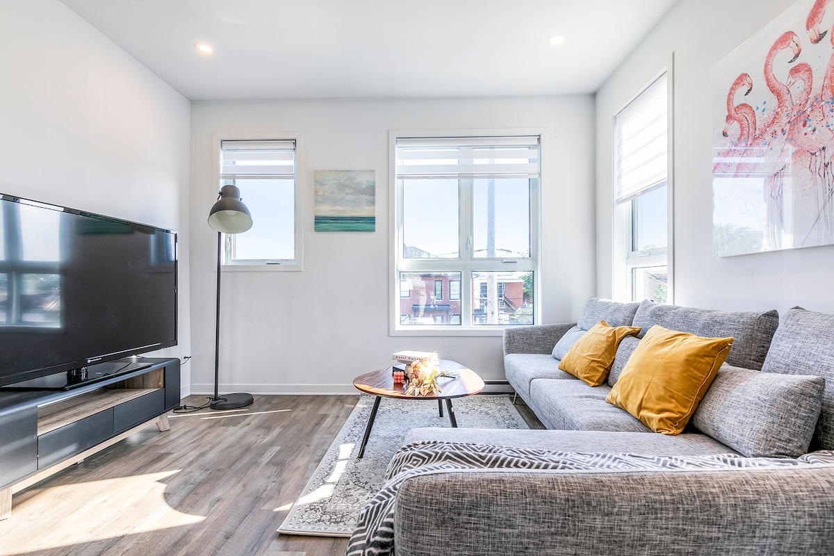 🛏️ Sleep Like a Dream – Pluche queensize bed met beddengoed van hotelkwaliteit. Rust uit na het verkennen van Montreal. 📺 Netflix & Chill Ready – Smart-tv met streaming-apps. 🚿 Moderne en vlekkeloze badkamer – 🍳 Volledig uitgeruste keuken – Bespaar $$ op uit eten gaan! Kook als een professional met alle benodigdheden. 🚗 ZELDZAME VONDST: GRATIS parkeren! - Parkeer GRATIS. 🚀 Work & Play – Snelle wifi + speciale werkplek voor digitale nomaden. ✅ 14 minuten naar het centrum van Montreal – Perfect voor concerten, festivals, nachtleven!