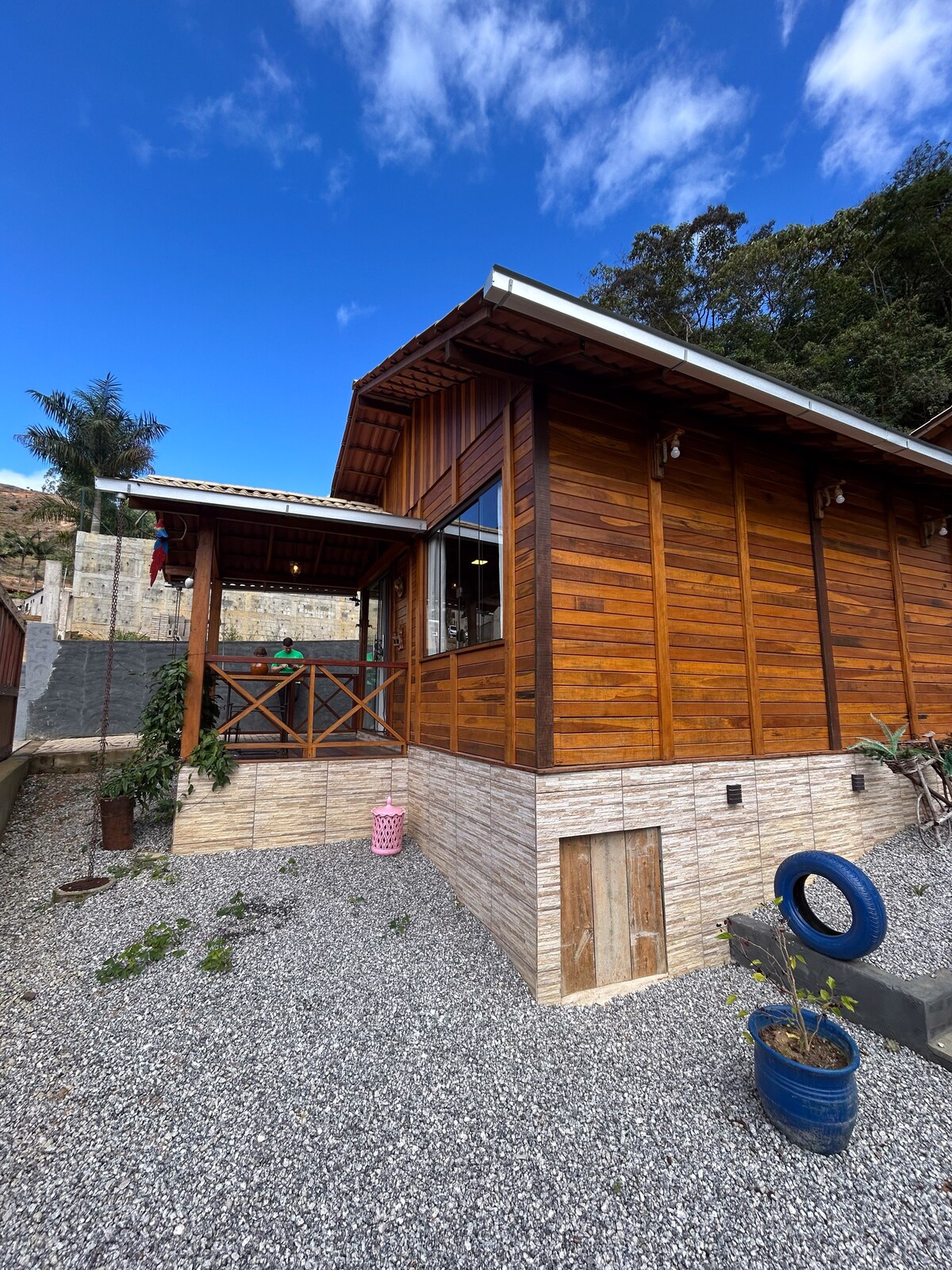 Respire o ar puro das montanhas capixabas com uma vista incrível da Pedra Azul. Viva uma aventura em uma casa em madeira de reflorestamento com todo o conforto e sossego que você merece. No entardecer, desfrute do deck enquanto assiste ao espetáculo de mudança de cores da Pedra Azul. Da banheira de imersão vislumbre a Pedra Azul de um lado e o Pico de Forno Grande de outro. Aquecimento de água, cooktop de indução, geladeira com congelador, natureza pra todos os lados e muito mais.