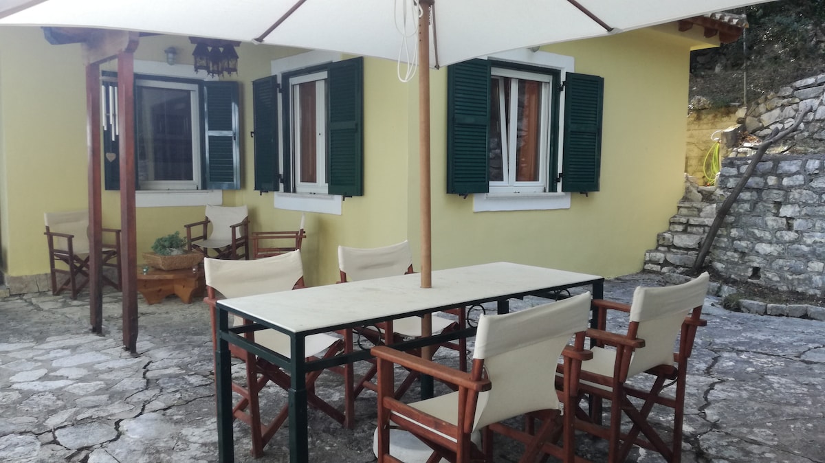 This is a stone studio only a few min walk away from the beach. Though it is located a short scroll away from Kioni port, one of the most popular and beautiful ports of the Ionian, a short walk away the other side, you will find yourself in a rural area, where farmers keep their animals and harvest the land with olive trees. It is a controversy, but this is where two contradicting lifestyles meet. A warm welcome is awaiting you, with top quality products, gifts of the Ithacan land.