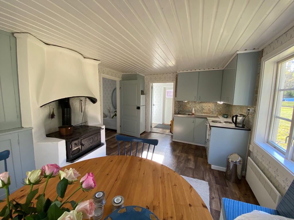 Klein appartement, rustig gelegen met de nabijheid van de natuur. Dicht bij meer, zwemgebied en buitenruimte met barbecuehutten en hardloopbanen. Bed van 140 cm plus een slaapbank Keuken, toilet en douche Beddengoed + handdoek beschikbaar tegen een toeslag van SEK 80/persoon Sauna: SEK 80 per sessie Ter info: twee kleine vrouwelijke katten ter plaatse Klein appartement dicht bij de natuur en een meer Zeer mooie hardloopsporen in de buurt in het bos Bed van 140 cm plus een slaapbank Keuken, toilet en douche Bedlinnen +80 SEK/pers Sauna: +80 SEK