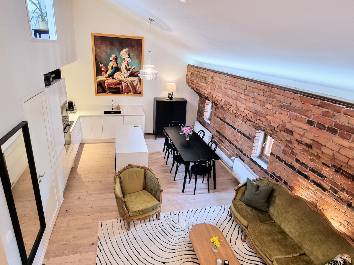 Stijlvolle penthouse loft met uitzicht op het dak met airco